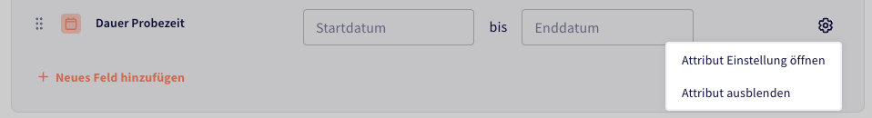 Es gibt eine Ausnahme: Sie können einzelne Attribute nur für den gerade ausgewählten Mitarbeiter verbergen, wenn sie für diesen keine Relevanz haben. Wählen Sie dazu "Bearbeiten" im jeweiligen Abschnitt und dann den Button mit dem Zahnrad: